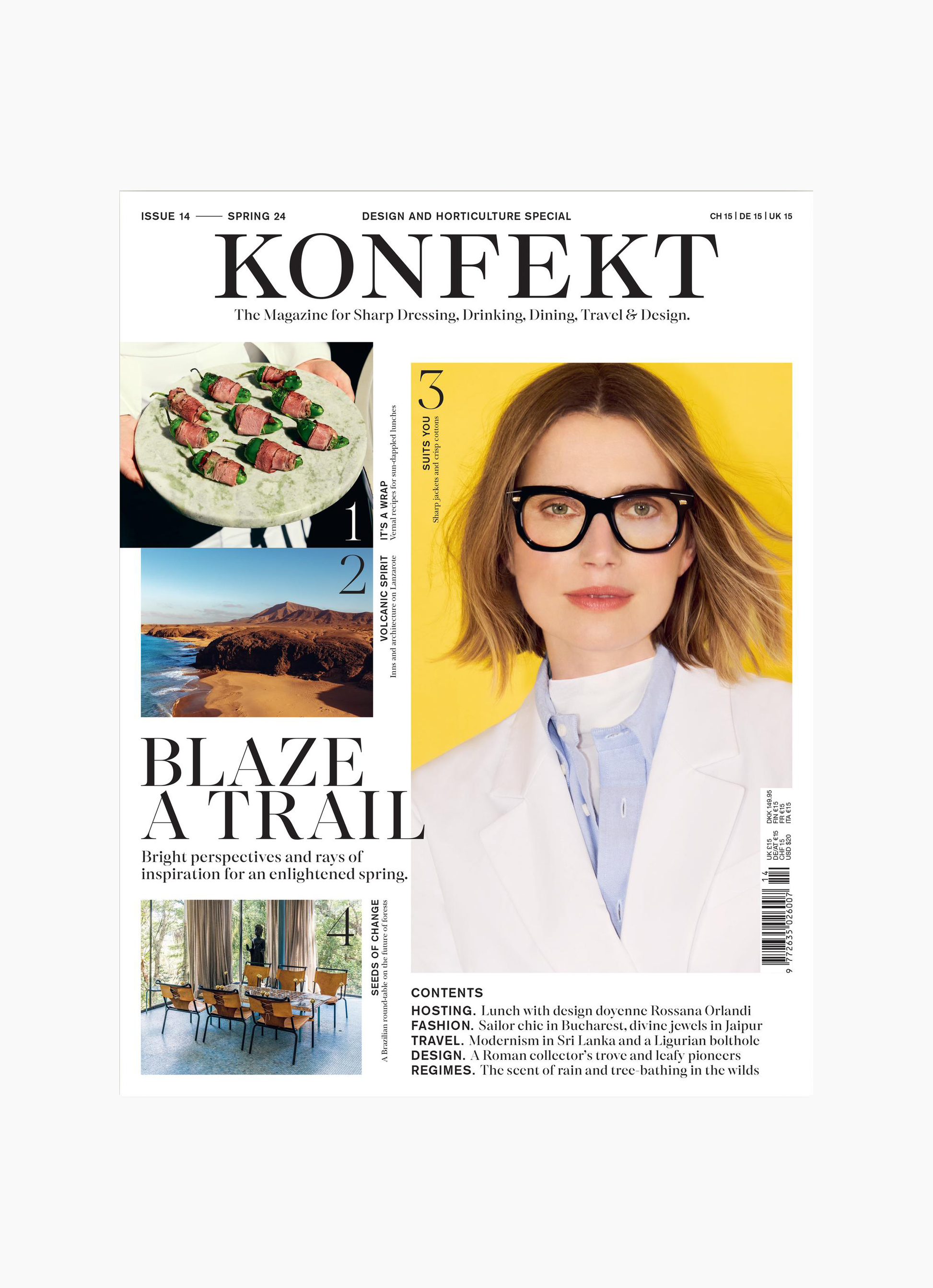Let the fresh air in – Konfekt’s spring issue is here to celebrate the promise of the new season. From a Belgian tree-grower to a bonsai master in Kyoto and a lush gardening shop in Vienna, our inaugural horticulture special will plant some bright ideas on how leafy additions can improve your surroundings – and your approach. Come with us on architecturally minded roadtrips through the volcanic island of Lanzarote and the tropical forests of Sri Lanka; from a modernist Alpine chalet to a minimalist Danish hut – via lunch with the doyenne of Milan’s Salone del Mobile – our design special is packed with fresh dispatches. Be it in the crisp cotton of our fashion picks or the zing of Turkish recipes with a twist, there’s plenty in these pages to inspire a sprightly seasonal reset.Share